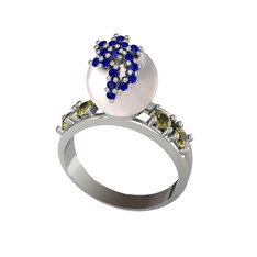 Inci ve lab safir 8 ayar beyaz altın yüzük