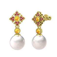 Inci, garnet ve dumanlı kuvars 925 ayar altın kaplama gümüş küpe