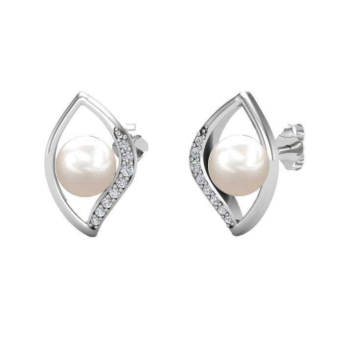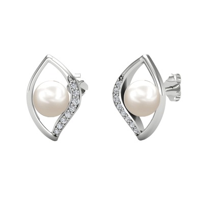 Inci ve beyaz zirkon 18 ayar beyaz altın küpe