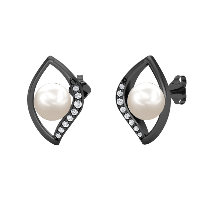 Inci ve pırlanta 925 ayar siyah rodyum kaplama gümüş küpe (0.24 karat)