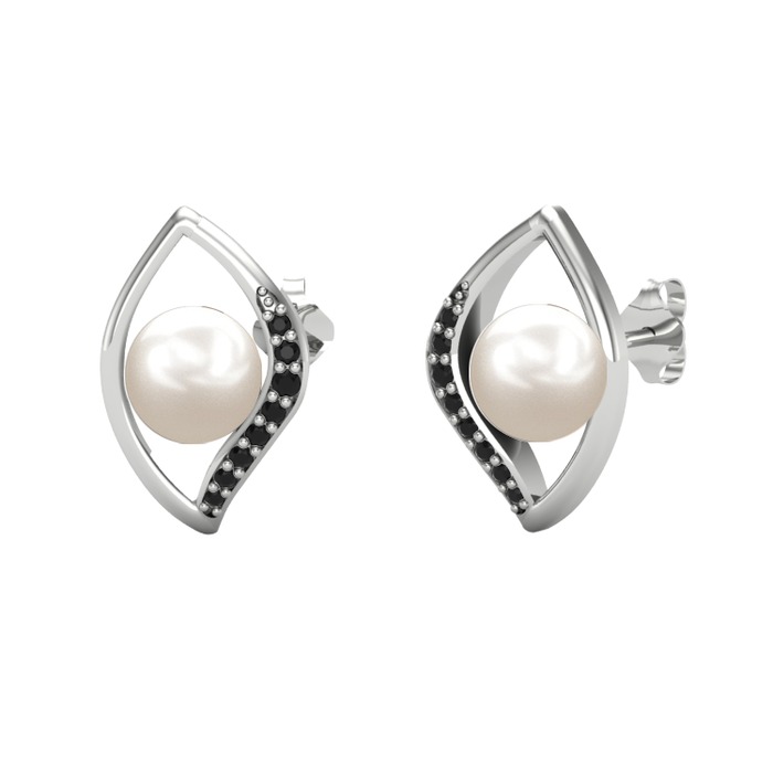 Inci ve siyah zirkon 925 ayar gümüş küpe