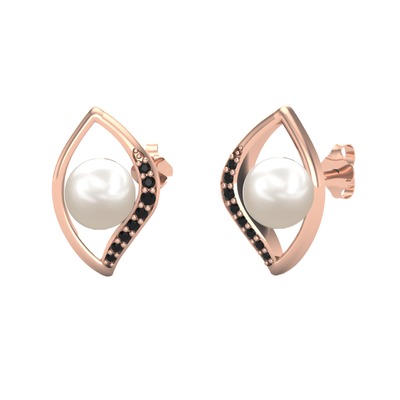 Inci ve siyah zirkon 925 ayar rose altın kaplama gümüş küpe