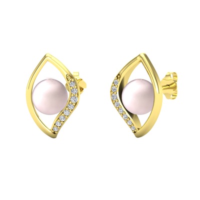 Pembe inci ve beyaz zirkon 8 ayar altın küpe