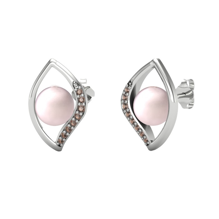 Pembe inci ve dumanlı kuvars 18 ayar beyaz altın küpe