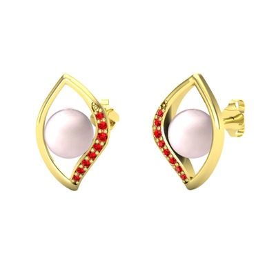 Pembe inci ve garnet 14 ayar altın küpe
