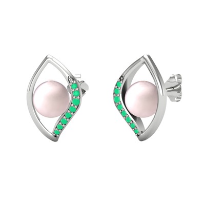 Pembe inci ve kök zümrüt 8 ayar beyaz altın küpe
