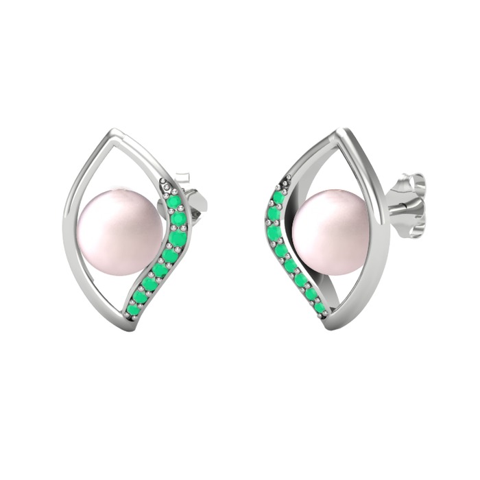 Pembe inci ve kök zümrüt 925 ayar gümüş küpe