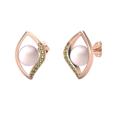 Pembe inci ve peridot 925 ayar rose altın kaplama gümüş küpe