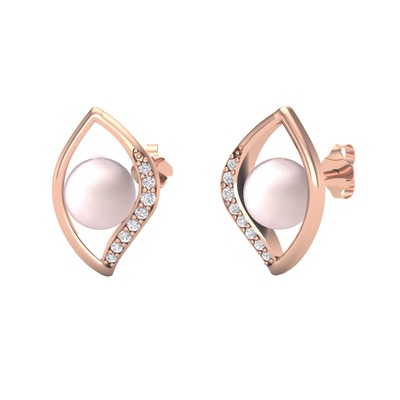 Pembe inci ve pırlanta 8 ayar rose altın küpe (0.24 karat)