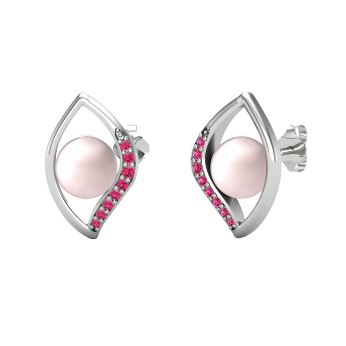 Pembe inci ve rodolit garnet 925 ayar gümüş küpe