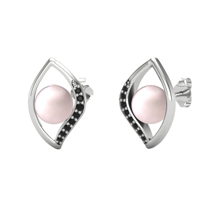 Pembe inci ve siyah zirkon 14 ayar beyaz altın küpe