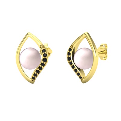 Pembe inci ve siyah zirkon 8 ayar altın küpe