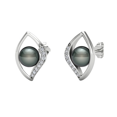 Siyah inci ve beyaz zirkon 925 ayar gümüş küpe