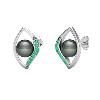 Siyah inci ve kök zümrüt 925 ayar gümüş küpe