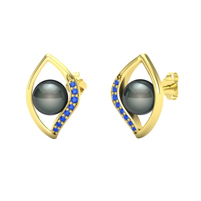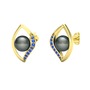 Siyah inci ve lab safir 14 ayar altın küpe