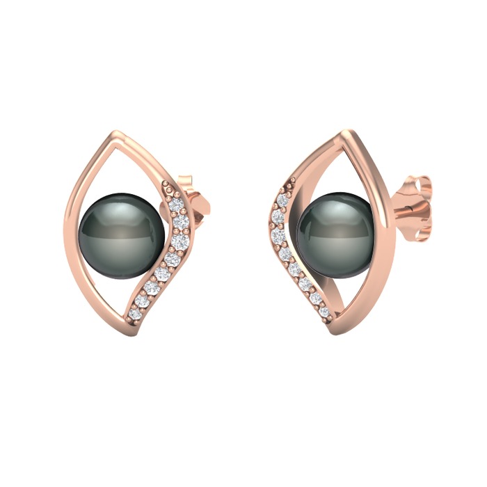Siyah inci ve pırlanta 14 ayar rose altın küpe (0.24 karat)