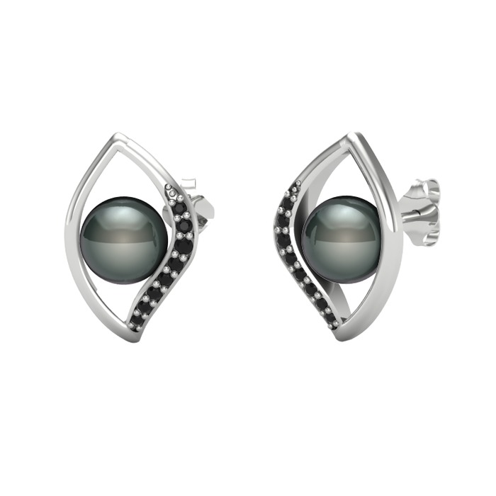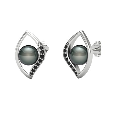 Siyah inci ve siyah zirkon 925 ayar gümüş küpe