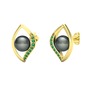 Siyah inci ve yeşil kuvars 14 ayar altın küpe