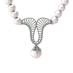 Swarovski ve inci 925 ayar rose altın kaplama gümüş kolye (40 cm gümüş rolo zincir)