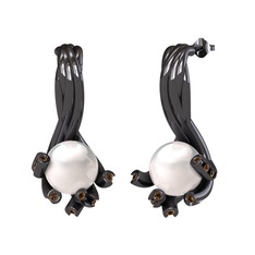Siyah zirkon ve inci 925 ayar rose altın kaplama gümüş küpe