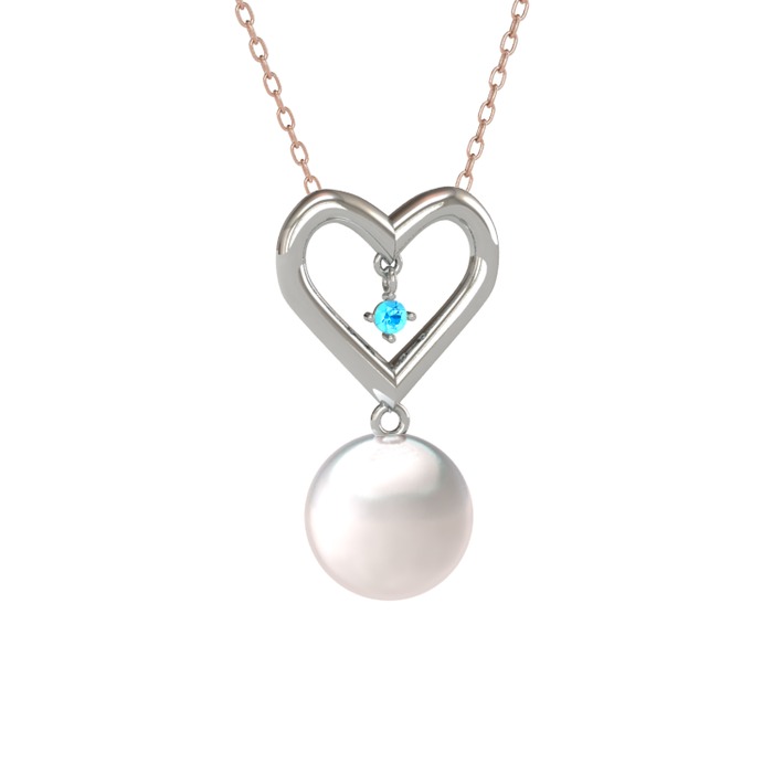 Inci ve akuamarin 18 ayar beyaz altın kolye (40 cm gümüş rolo zincir)