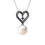 Inci ve ametist 925 ayar siyah rodyum kaplama gümüş kolye (40 cm beyaz altın rolo zincir)