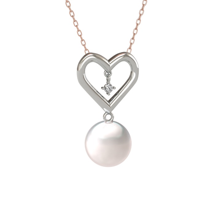 Inci ve beyaz zirkon 8 ayar beyaz altın kolye (40 cm rose altın rolo zincir)