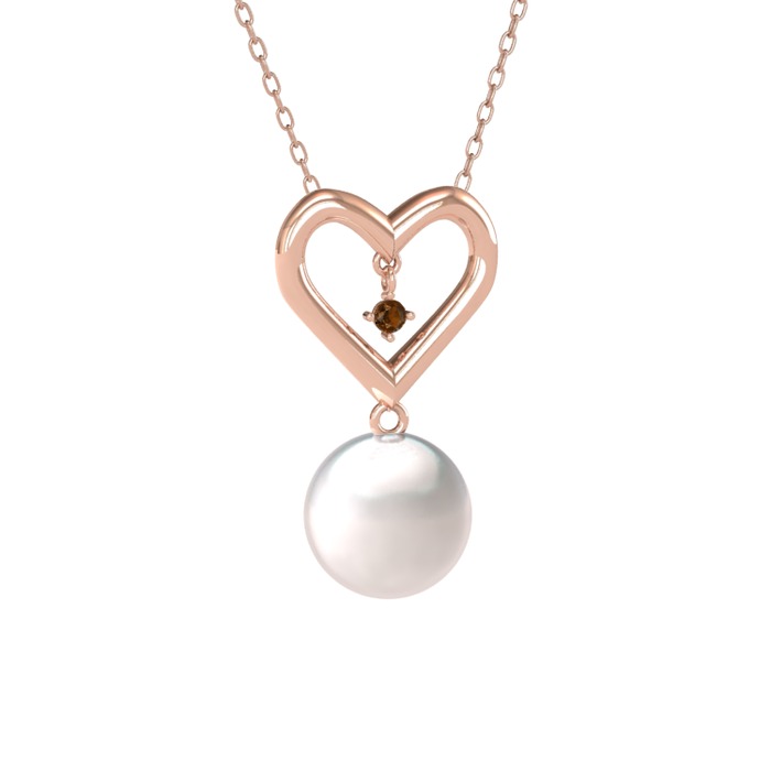 Inci ve dumanlı kuvars 14 ayar rose altın kolye (40 cm rose altın rolo zincir)