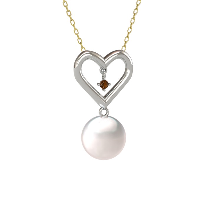 Inci ve dumanlı kuvars 925 ayar gümüş kolye (40 cm altın rolo zincir)
