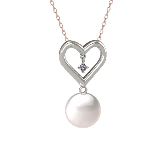 Inci ve elmas 8 ayar beyaz altın kolye (0.036 karat, 40 cm rose altın rolo zincir)