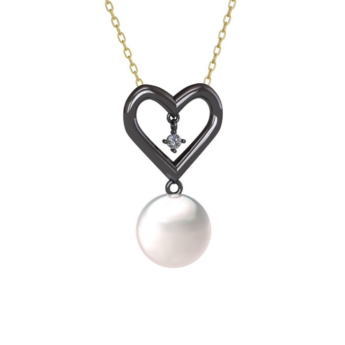Inci ve elmas 925 ayar siyah rodyum kaplama gümüş kolye (0.036 karat, 40 cm altın rolo zincir)