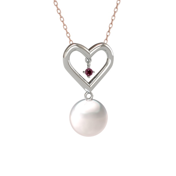 Inci ve kök yakut 8 ayar beyaz altın kolye (40 cm rose altın rolo zincir)