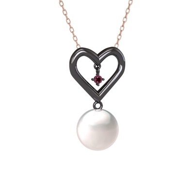 Inci ve kök yakut 925 ayar siyah rodyum kaplama gümüş kolye (40 cm rose altın rolo zincir)