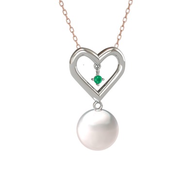 Inci ve kök zümrüt 18 ayar beyaz altın kolye (40 cm gümüş rolo zincir)