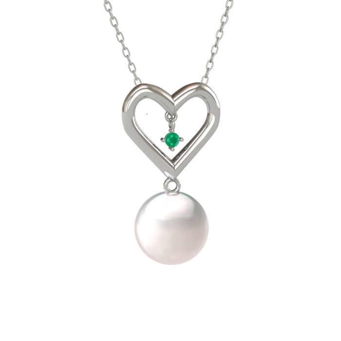 Inci ve kök zümrüt 925 ayar gümüş kolye (40 cm beyaz altın rolo zincir)