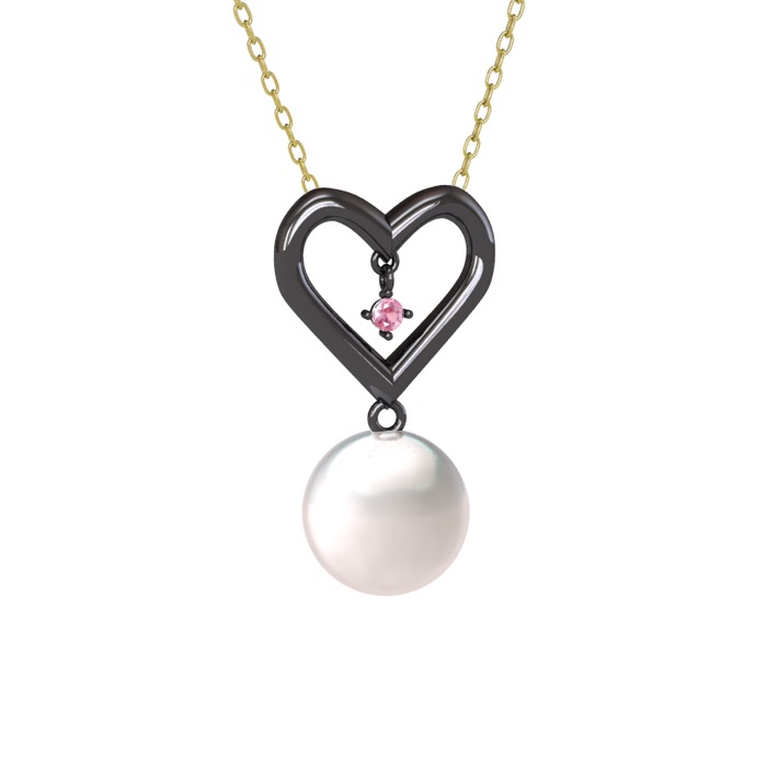Inci ve pembe kuvars 925 ayar siyah rodyum kaplama gümüş kolye (40 cm altın rolo zincir)