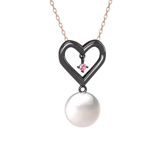 Inci ve pembe kuvars 925 ayar siyah rodyum kaplama gümüş kolye (40 cm gümüş rolo zincir)