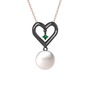 Inci ve yeşil kuvars 925 ayar siyah rodyum kaplama gümüş kolye (40 cm gümüş rolo zincir)