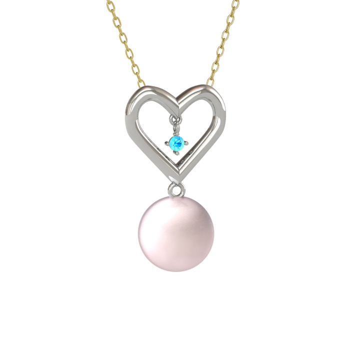 Pembe inci ve akuamarin 14 ayar beyaz altın kolye (40 cm altın rolo zincir)