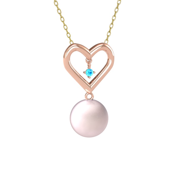 Pembe inci ve akuamarin 8 ayar rose altın kolye (40 cm gümüş rolo zincir)