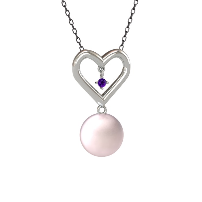 Pembe inci ve ametist 18 ayar beyaz altın kolye (40 cm gümüş rolo zincir)