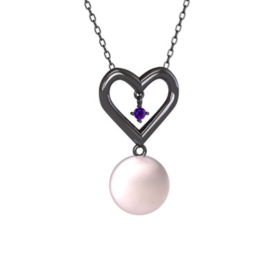 Pembe inci ve ametist 925 ayar siyah rodyum kaplama gümüş kolye (40 cm gümüş rolo zincir)