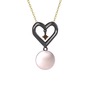 Pembe inci ve dumanlı kuvars 925 ayar siyah rodyum kaplama gümüş kolye (40 cm altın rolo zincir)