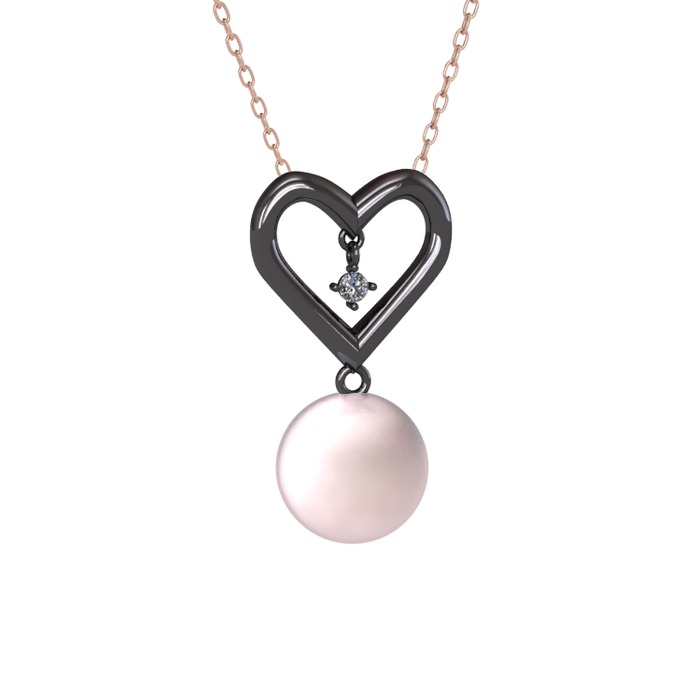 Pembe inci ve elmas 925 ayar siyah rodyum kaplama gümüş kolye (0.036 karat, 40 cm rose altın rolo zincir)
