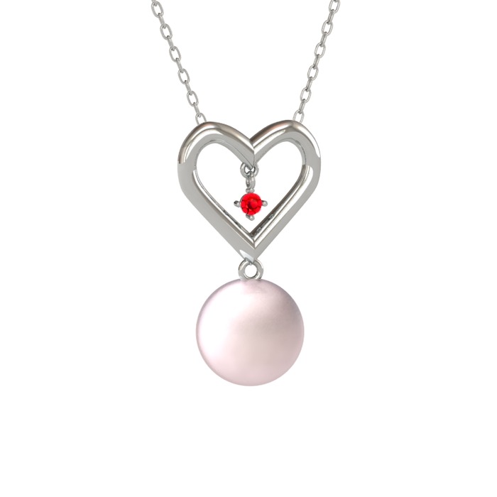 Pembe inci ve garnet 18 ayar beyaz altın kolye (40 cm beyaz altın rolo zincir)