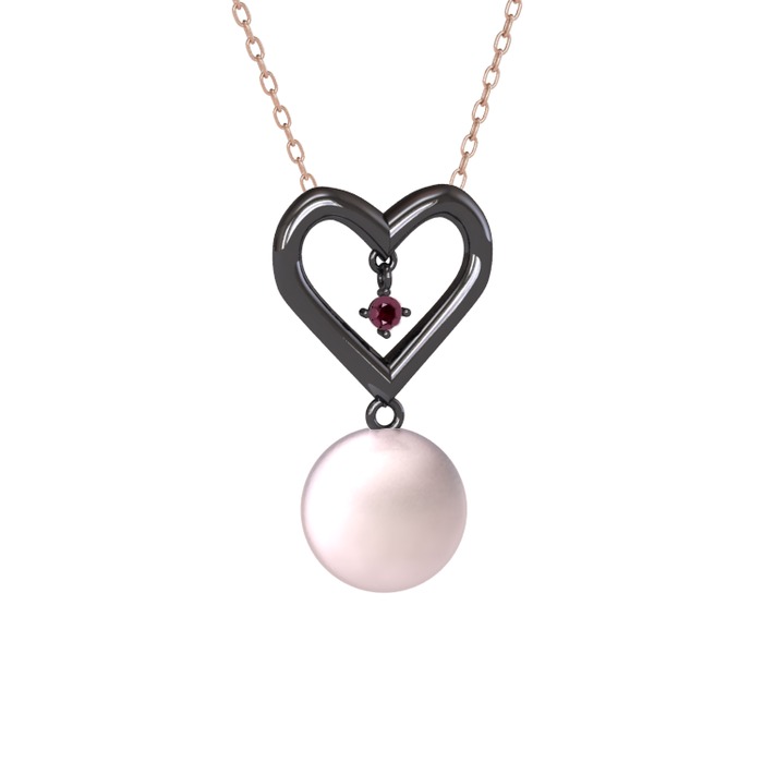 Pembe inci ve kök yakut 925 ayar siyah rodyum kaplama gümüş kolye (40 cm rose altın rolo zincir)