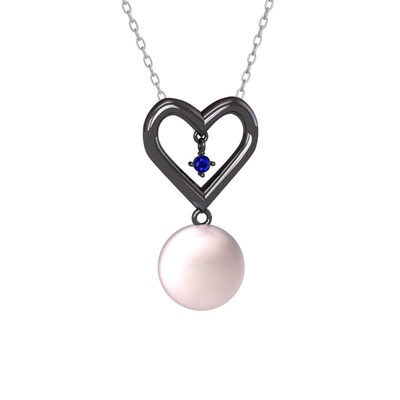 Pembe inci ve lab safir 925 ayar siyah rodyum kaplama gümüş kolye (40 cm gümüş rolo zincir)
