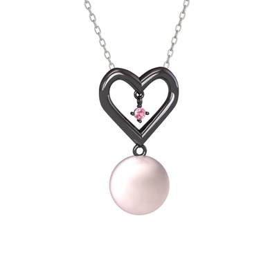 Pembe inci ve pembe kuvars 925 ayar siyah rodyum kaplama gümüş kolye (40 cm beyaz altın rolo zincir)