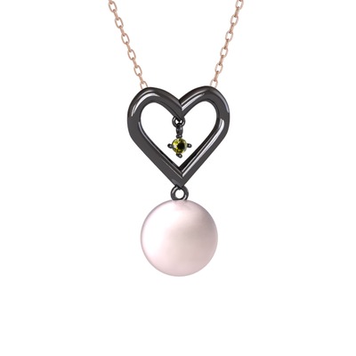 Pembe inci ve peridot 925 ayar siyah rodyum kaplama gümüş kolye (40 cm rose altın rolo zincir)