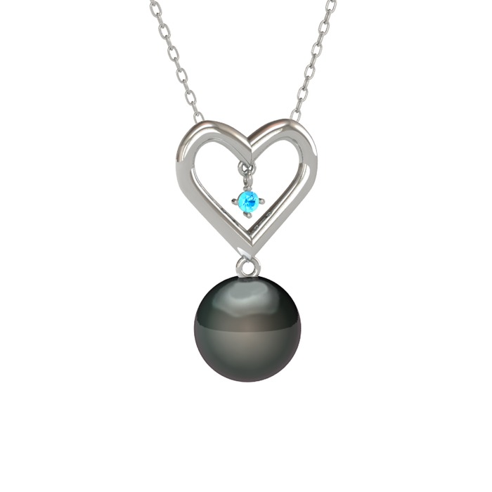 Siyah inci ve akuamarin 8 ayar beyaz altın kolye (40 cm beyaz altın rolo zincir)